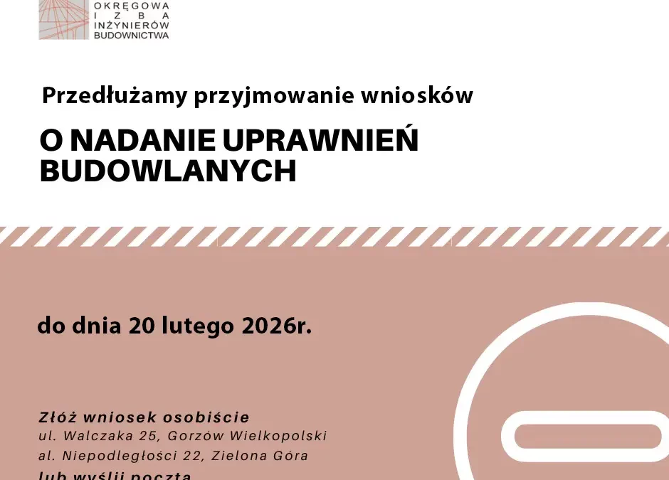 że osoby zamieszkałe na terenie województwa lubuskiego mogą składać nowe wnioski o nadanie uprawnień budowlanych w terminie od 19 stycznia do 20 lutego 2026 r.
